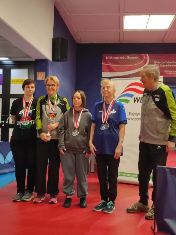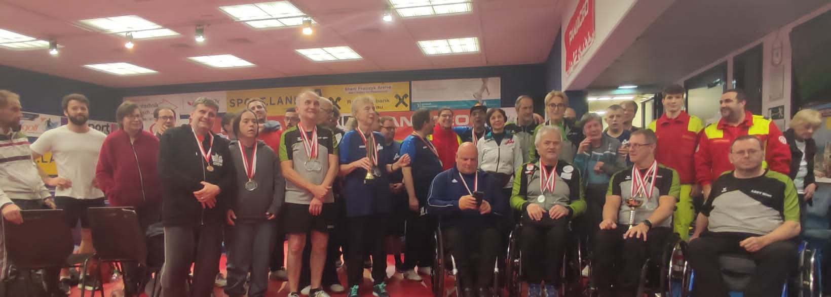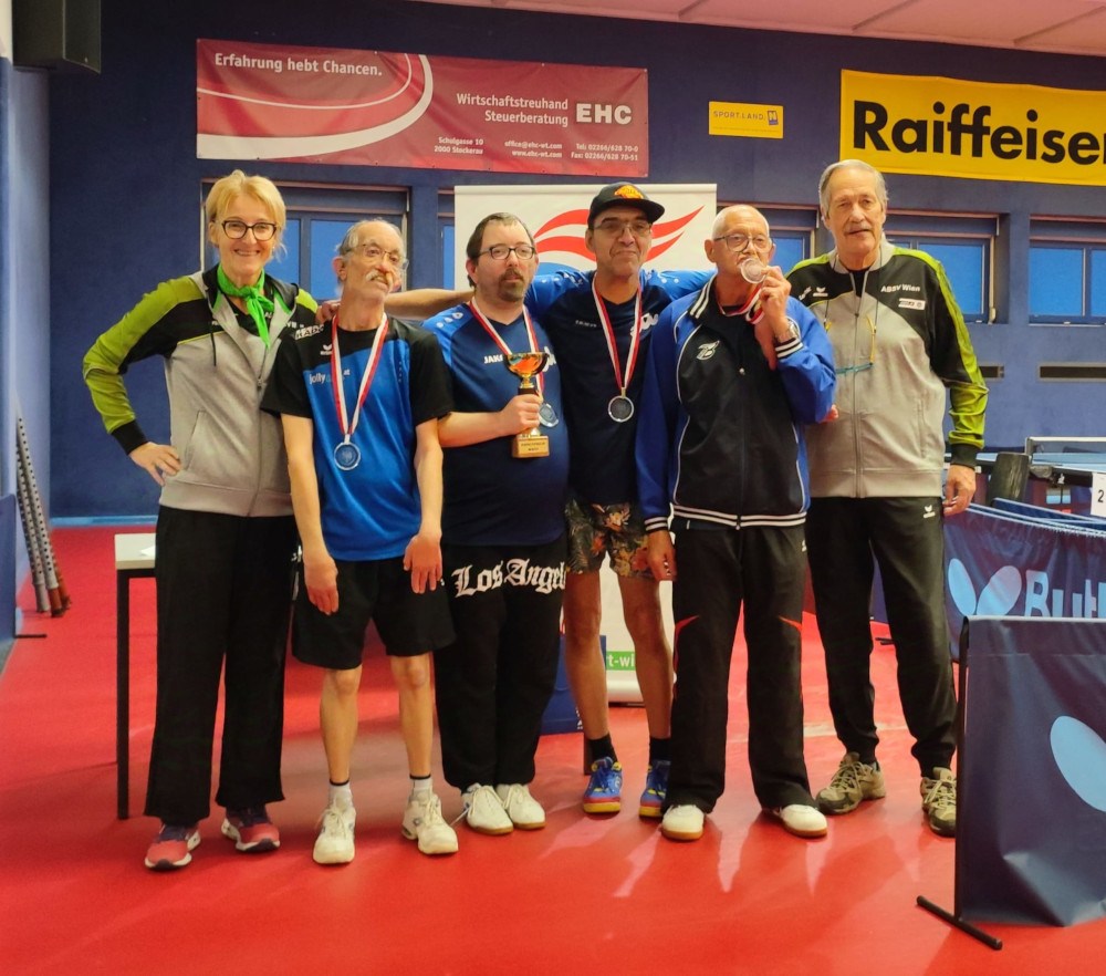 Am Samstag, 30.11.2024 fanden die Wiener Landesmeisterschaften im Tischtennis für SportlerInnen mit Behinderung in der Stanislaw Fraczyk Arena in Stockerau statt. Der langjährige Veranstalter ABSV-Wien mit Gesamtleiter Stefan Hoffmann und Sportlichen Leiter Johann Knoll, die erfahrenen Schiedsrichter des Wiener Tischtennisverbandes und die engagierte Zusammenarbeit aller sorgten wieder für einen reibungslosen Ablauf des TT-Turniers. 26 SportlerInnen aus drei Wiener Vereinen lieferten sich sehr spannende und faire Matches in den Bewerben „Einzel“ in fünf unterschiedlichen Wettkampfklassen und im „Einzel–Offen“ und „Doppel-Offen“ Damen und Herren.